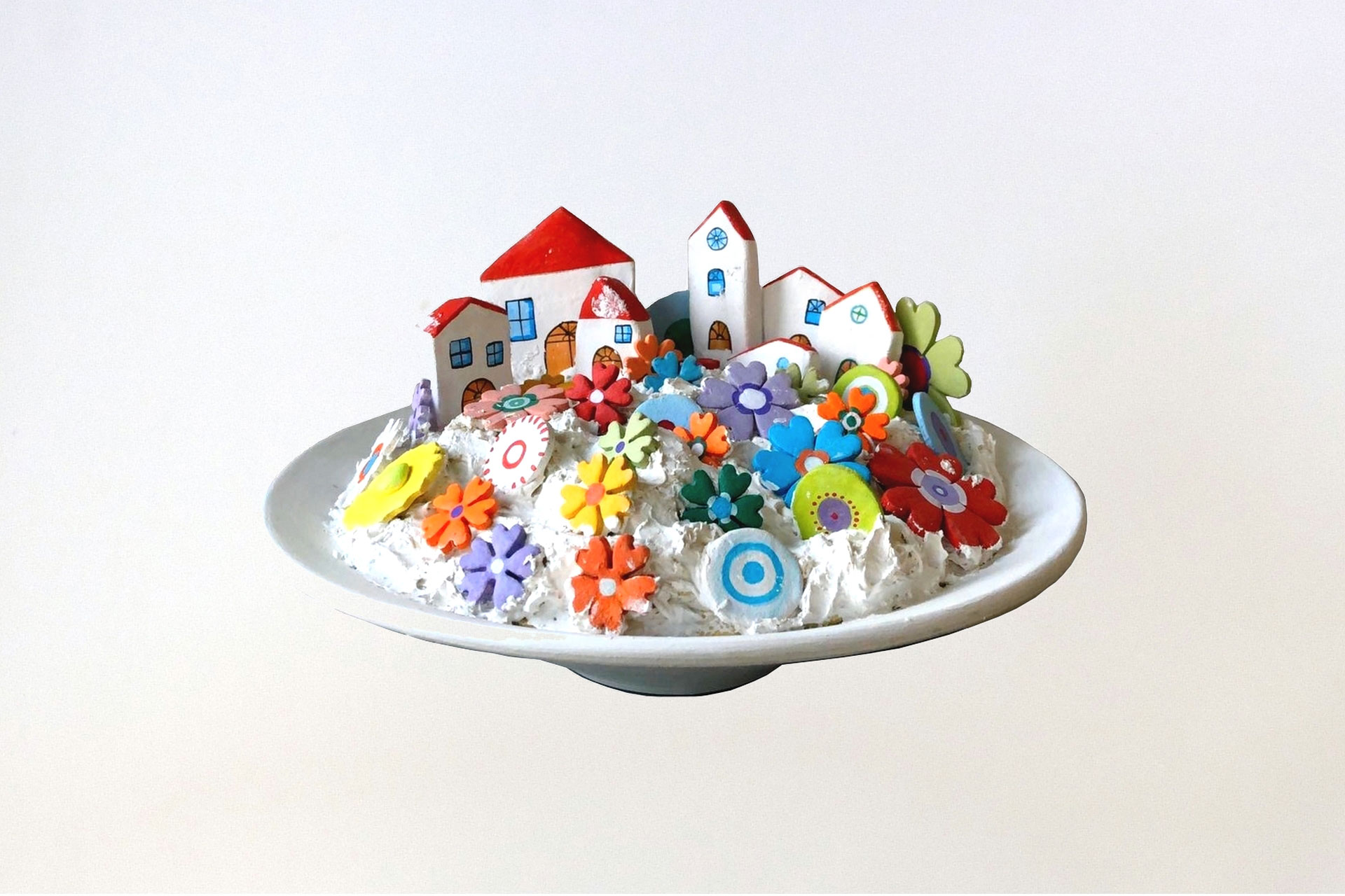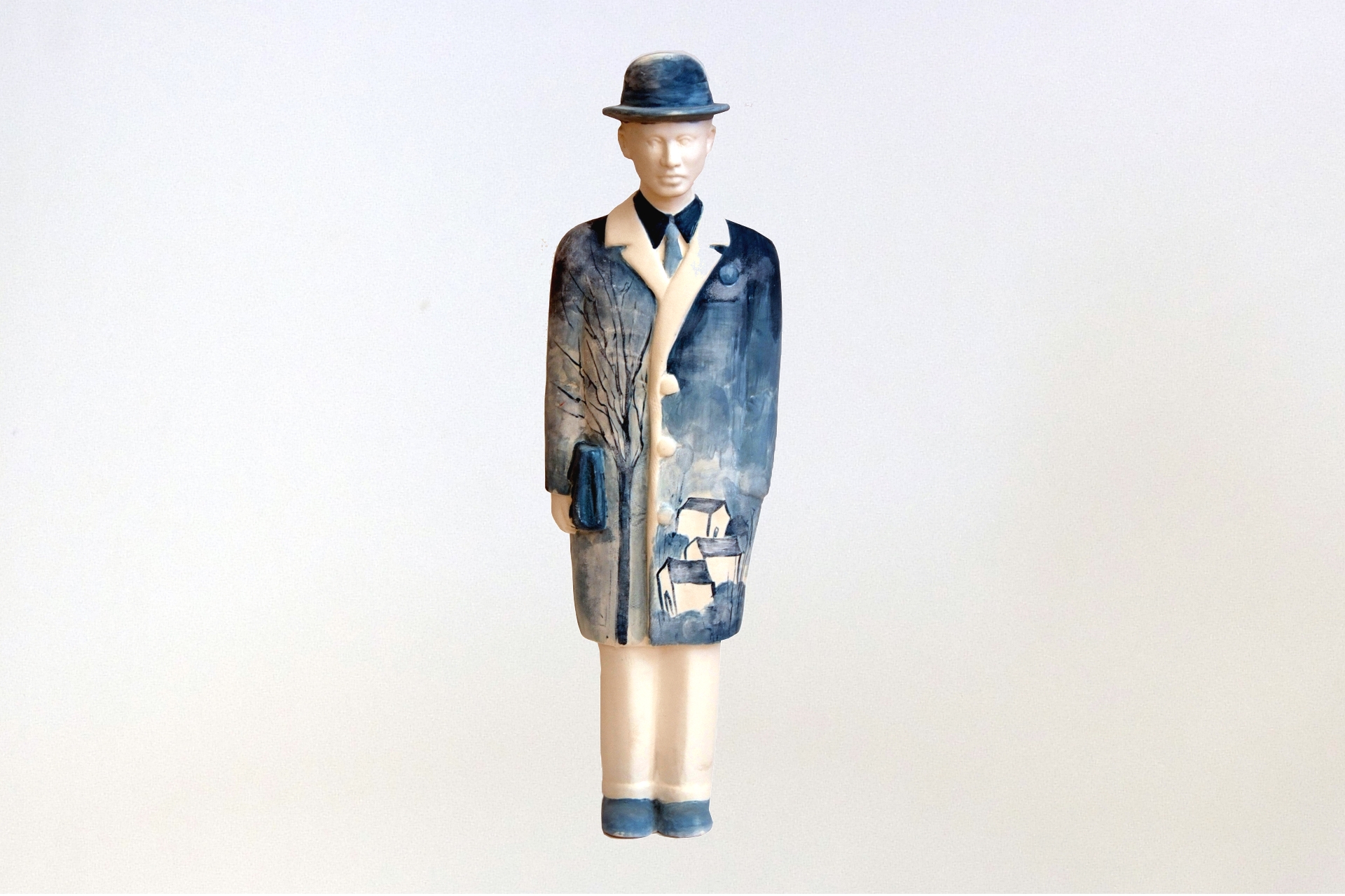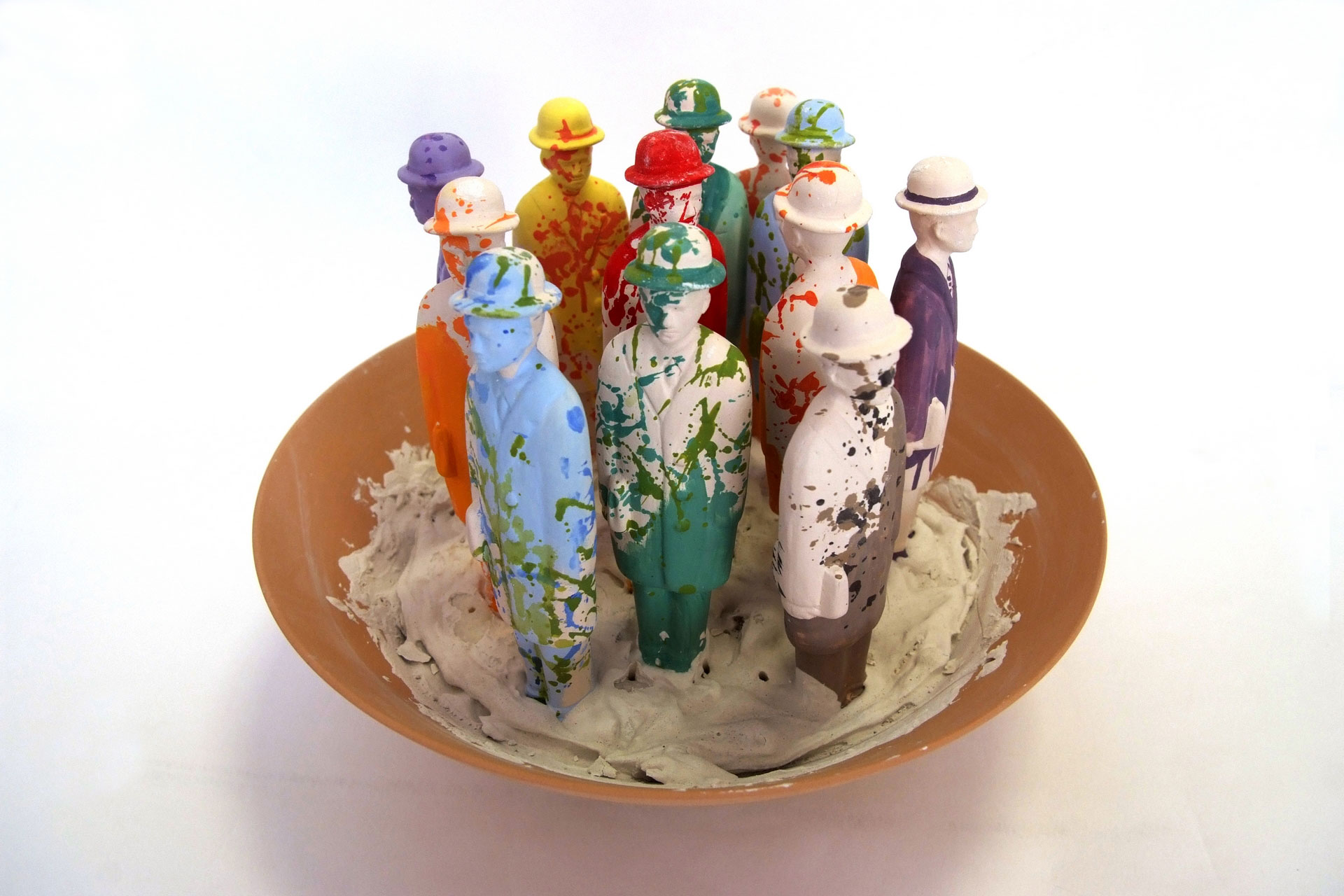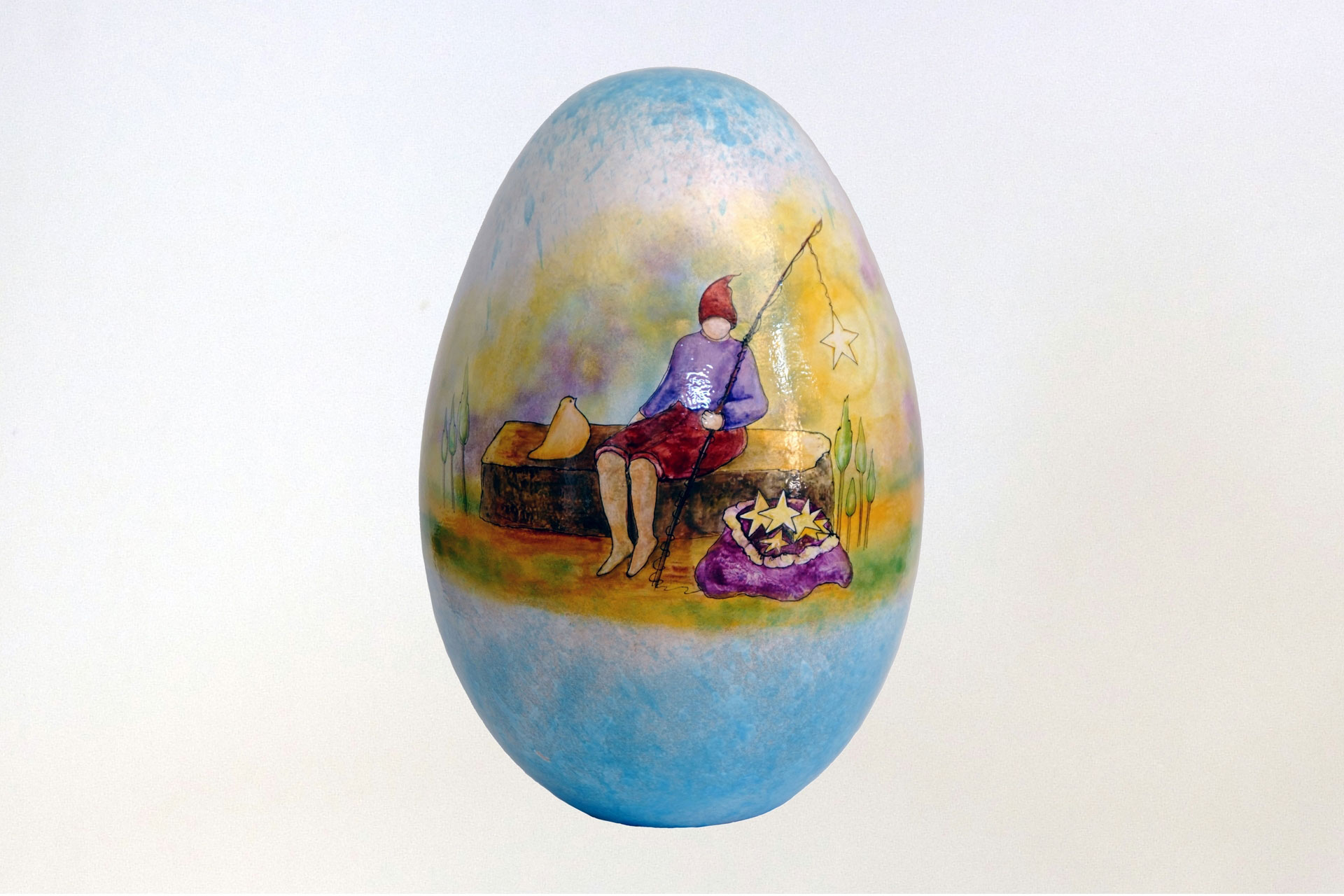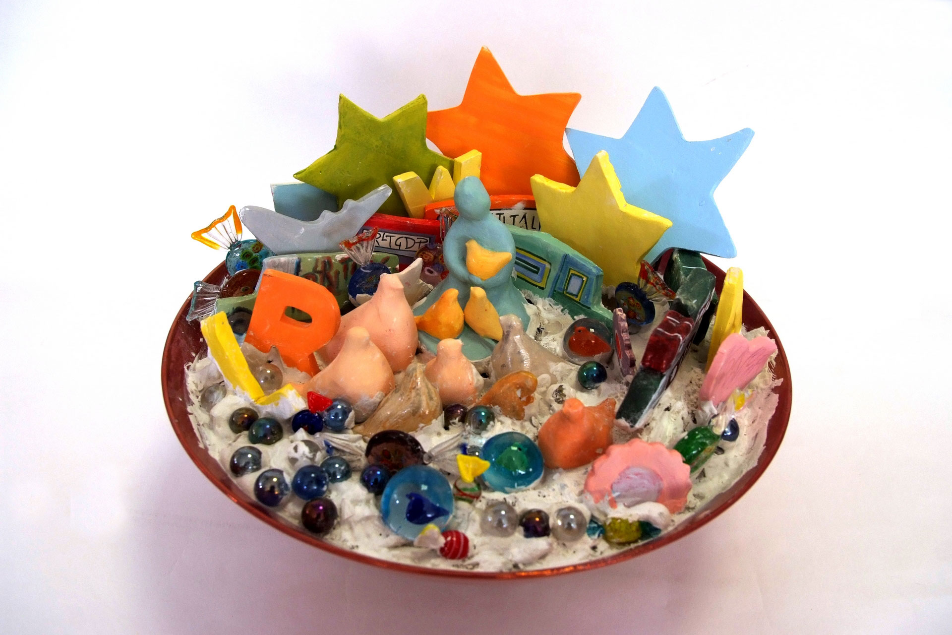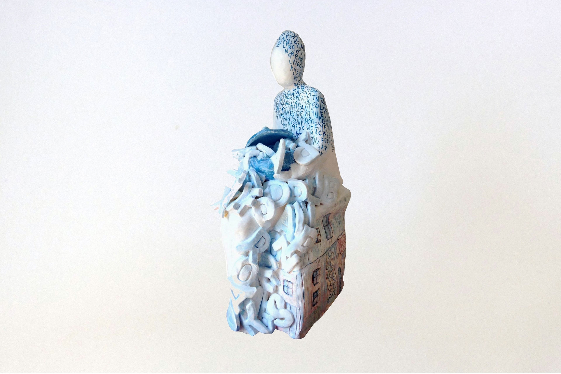 Donna colta e artista di vaglia, ottima disegnatrice e modellatrice, Fausta Cropelli ci offre qui – dopo i piccioni e gli spiritelli – la sua terza persuasiva serie di creature nate dall’alchimìa del gran fuoco e del piccolo fuoco, del biscuit, dalla preziosità degli smalti, delle cristalline, dei lustri, degli ori, degli engobi, insomma dalla varietà di quella plurisecolare tecnica ceramistica a più cotture, che lei ha appreso da autodidatta, ma che ha saputo aggiornare e reinventare con stile personale, uno stile che non esclude la commistione di materiali, la ricerca e la sperimentazione di nuove strade. Forme modulari e seriali, replicate con gli stampi, ma che divengono, come le definisce Fausta, “le mie tele”, le superfici sui cui esprimere e dilatare un’inesauribile, sontuoso repertorio pittorico, una saturazione decorativa fatta di pennellate talora astratte, di sapienti gocciolature, di segni, di motivi floreali, vegetali, figurativi, in un proliferare gestuale che va letto sia nel dettaglio sia nell’assieme.
