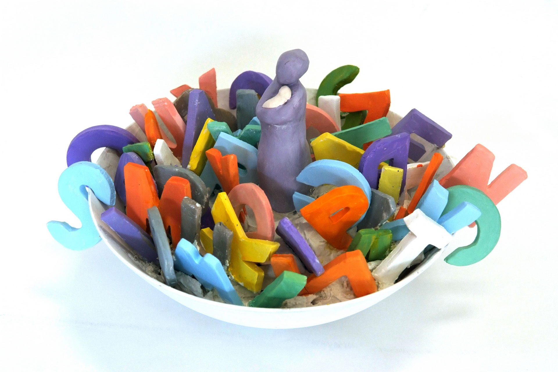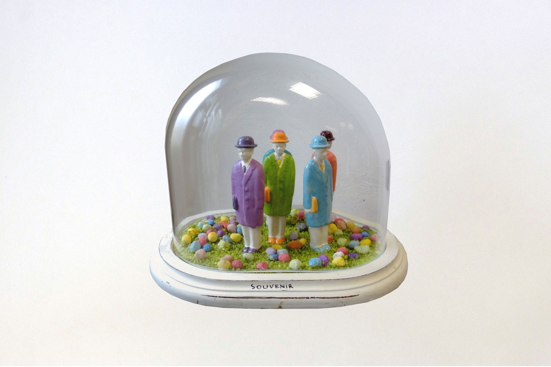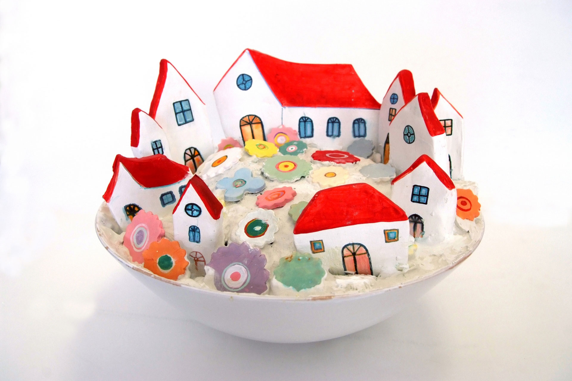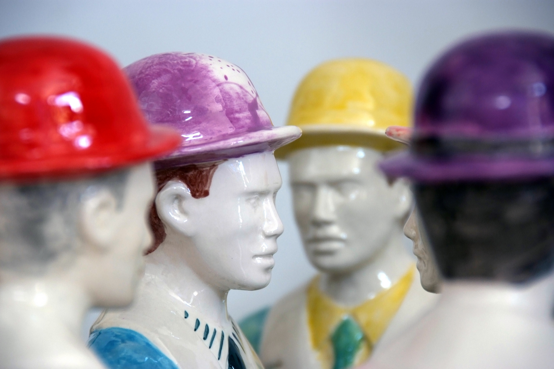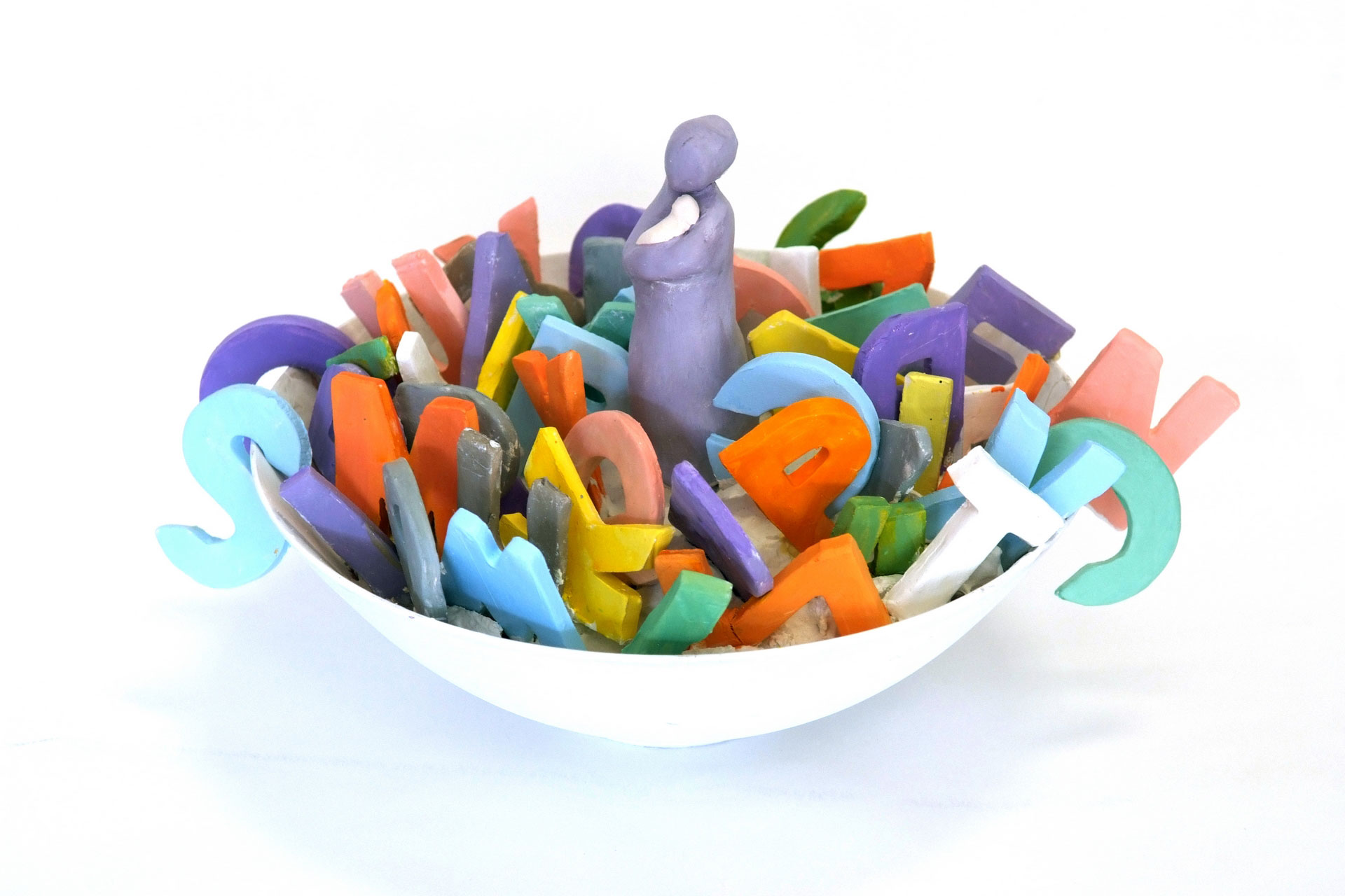 Donna colta e artista di vaglia, ottima disegnatrice e modellatrice, Fausta Cropelli ci offre qui – dopo i piccioni e gli spiritelli – la sua terza persuasiva serie di creature nate dall’alchimìa del gran fuoco e del piccolo fuoco, del biscuit, dalla preziosità degli smalti, delle cristalline, dei lustri, degli ori, degli engobi, insomma dalla varietà di quella plurisecolare tecnica ceramistica a più cotture, che lei ha appreso da autodidatta, ma che ha saputo aggiornare e reinventare con stile personale, uno stile che non esclude la commistione di materiali, la ricerca e la sperimentazione di nuove strade. Forme modulari e seriali, replicate con gli stampi, ma che divengono, come le definisce Fausta, “le mie tele”, le superfici sui cui esprimere e dilatare un’inesauribile, sontuoso repertorio pittorico, una saturazione decorativa fatta di pennellate talora astratte, di sapienti gocciolature, di segni, di motivi floreali, vegetali, figurativi, in un proliferare gestuale che va letto sia nel dettaglio sia nell’assieme.